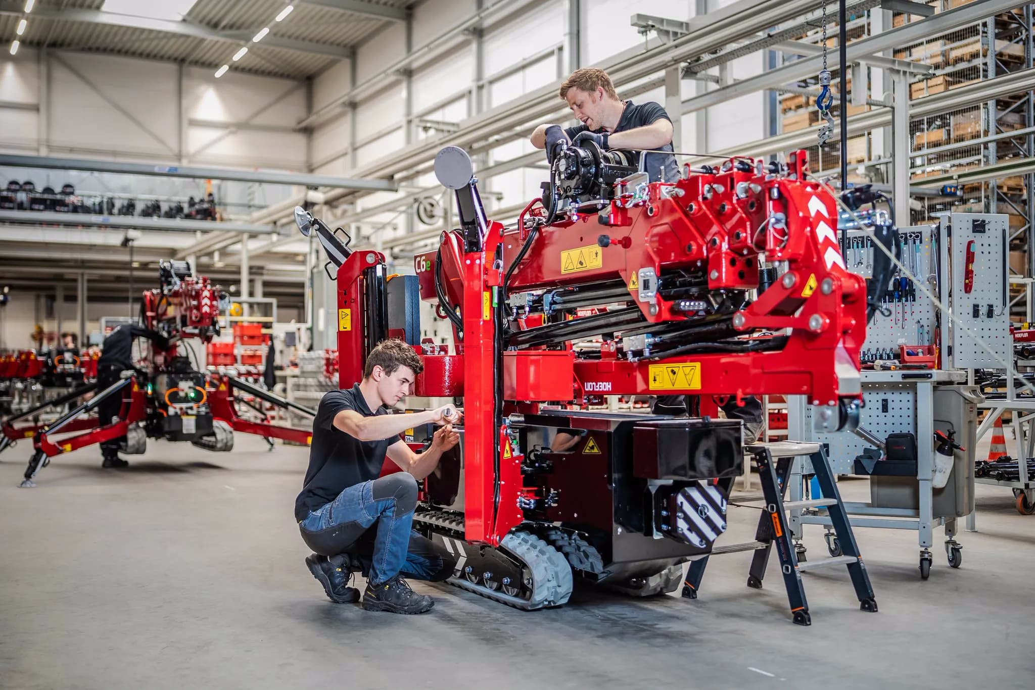 Hoeflon emploie des personnes enthousiastes et passionnées par la technologie. Ensemble, nous formons une équipe de spécialistes dévoués qui s’efforcent continuellement d’innover et de perfectionner. Nous concevons et construisons des grues compactes dont nous sommes fiers – des machines qui sont non seulement puissantes et efficaces, mais qui repoussent également les limites en termes de précision et de facilité d’utilisation.