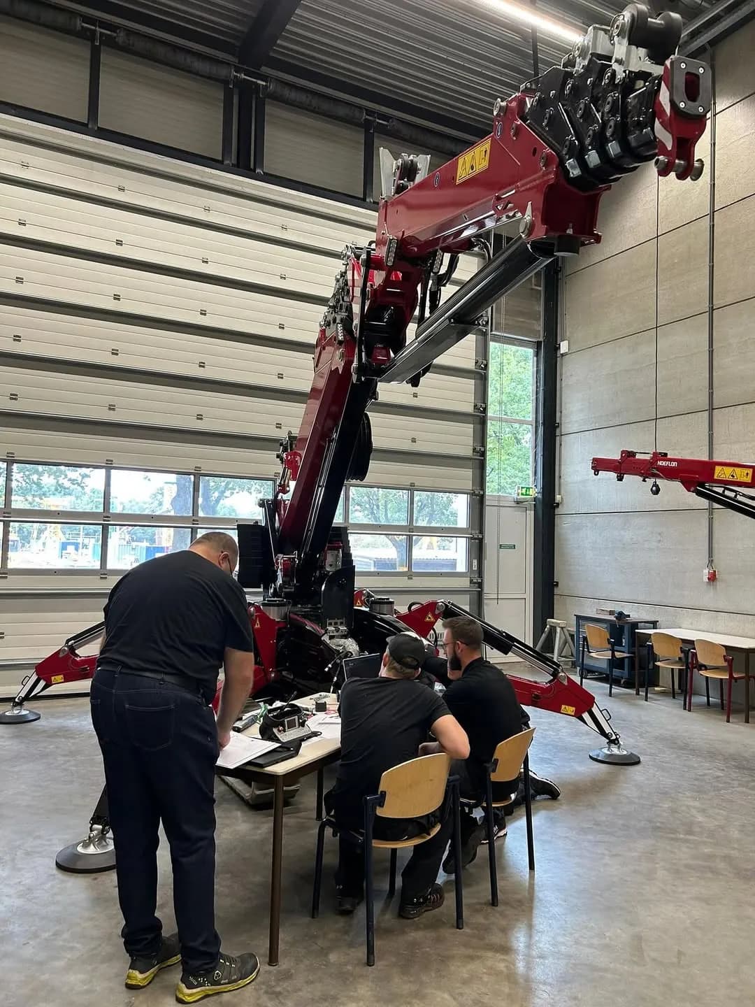 La semaine dernière, nous avons accueilli chez Hoeflon des concessionnaires et des clients de Finlande, de Suède, d'Islande et d'Espagne pour une formation à la maintenance. Cette formation couvrait différents modèles de grues et mettait l'accent sur l'utilisation pratique, la maintenance et le dépannage.