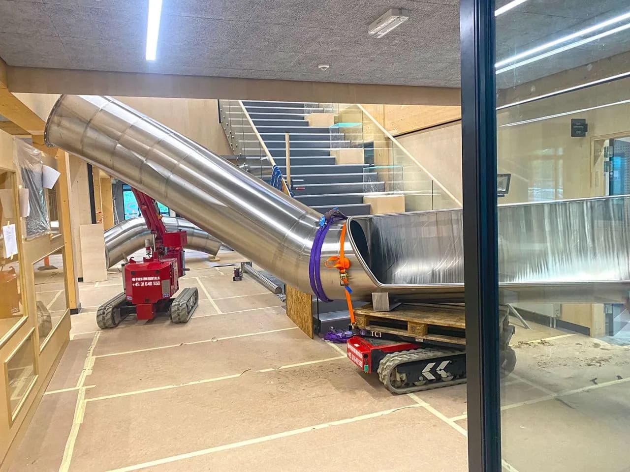 Un Hoeflon C1e et un TC1 ont installé un toboggan intérieur pour Preston Rentals.